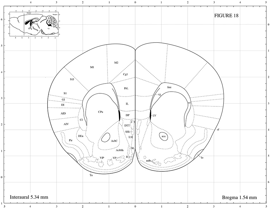 Atlas Source: Paxinos, George, and Keith B.J. Franklin. The mouse brain in stereotaxic coordinates: hard cover edition. Access Online via Elsevier, 2001.